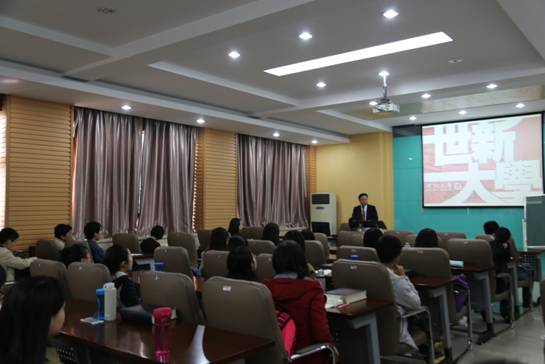 座谈会上,杨九龙副院长代表曹蓉院长向到访嘉宾表示了欢迎,并介绍了我院专业设置、师资力量、学生结构等基本情况,邱志淳院长介绍了世新大学的基本情况、特色专业。随后,我院教师就前往世新大学交流学习进行重点咨询。邱院长希望双方今后能继续在学生派出、教师互访和共同举办国际学术会议等方面加强合作。会谈中,双方还就加强学生短期研修项目、暑期交流项目和学术资料共享等方面的合作进行了深入探讨,并初步达成合作意向。随后,在三层多媒体报告厅,邱院长向我院学生介绍了管理学院的基本情况和专业设置,并播放了世新大学宣传片,丁淑英老师对2016年世新大学春季学期短期研修项目进行了宣讲,目前学校报名工作已正式启动。