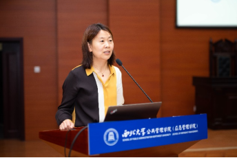 北京大学政府管理学院副院长黄璜教授作了题为《数字治理研究与新文科建设》的报告。首先,黄院长介绍了北京大学成立数字治理研究中心的具体情况,分析了以数字化转型整体驱动生产方式、生活方式和治理方式变革是未来数字治理研究的重点。然后,黄院长指出公共管理实践越来越依托于数字技术的应用,公共管理研究必须回应数字时代的治理问题。最后,黄院长认为公共管理学科可以整合碎片化的数字治理研究,发展数字政府与大数据实验平台,多方共同探索政、产、教、研协同机制,推动学术科研成果和政策咨询服务相互转化,促进学术前沿与国家战略紧密结合。