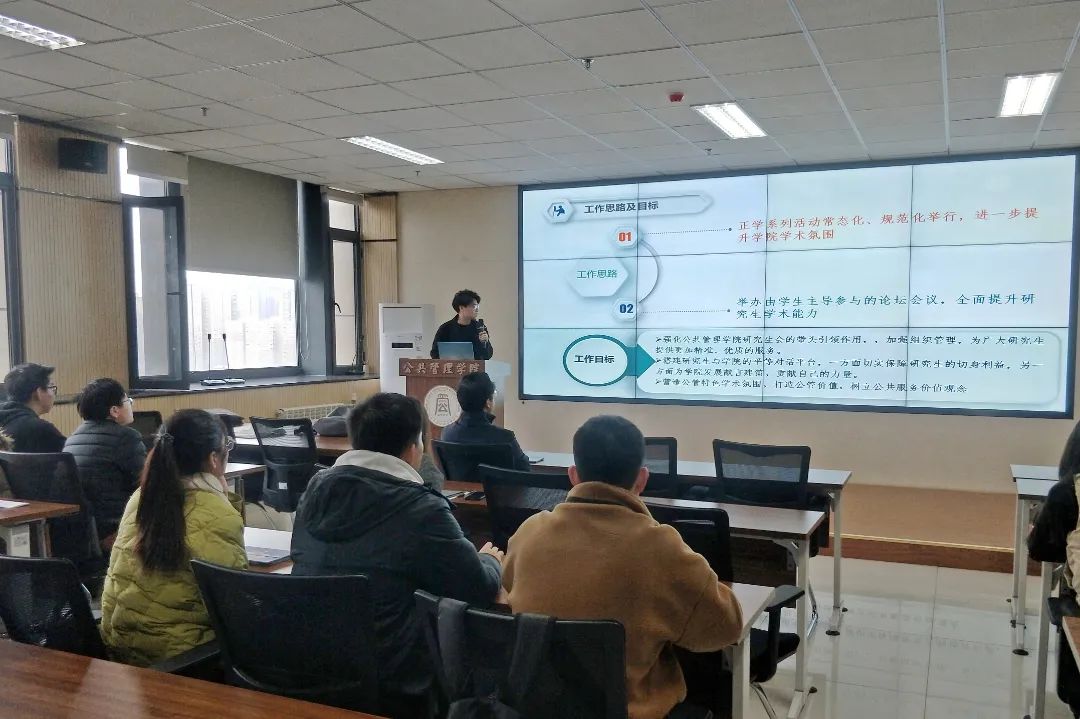 与此同时,他还对研究生的学习与生活提出了几点建议。一是建议大家要珍惜时间,回归学术,主动参与到学习与研究的过程中来;二是建议大家要加强与老师的联系,在学术上多请教,在生活上多交流。最后,他勉励研究生会成员要再接再厉,继续坚持“以学术为志业,以公管为旨趣”,推动学术活动常态化,传承西北大学公共管理学科的优良学风,使学生在丰富多彩的学术活动中提高学术素养和精神追求。