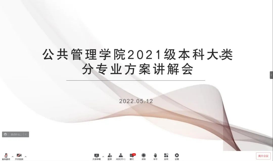 根据我校大类招生、大类培养的人才培养模式和2022版本科培养方案,按照学校相关文件要求与学院大类专业分流工作总体安排,我院于5月12日晚以线上会议的方式面向2021级全体学生召开本科大类分专业方案讲解会,此次讲解会由2021级辅导员杨琬钰主持,2021级全体本科生参会。
