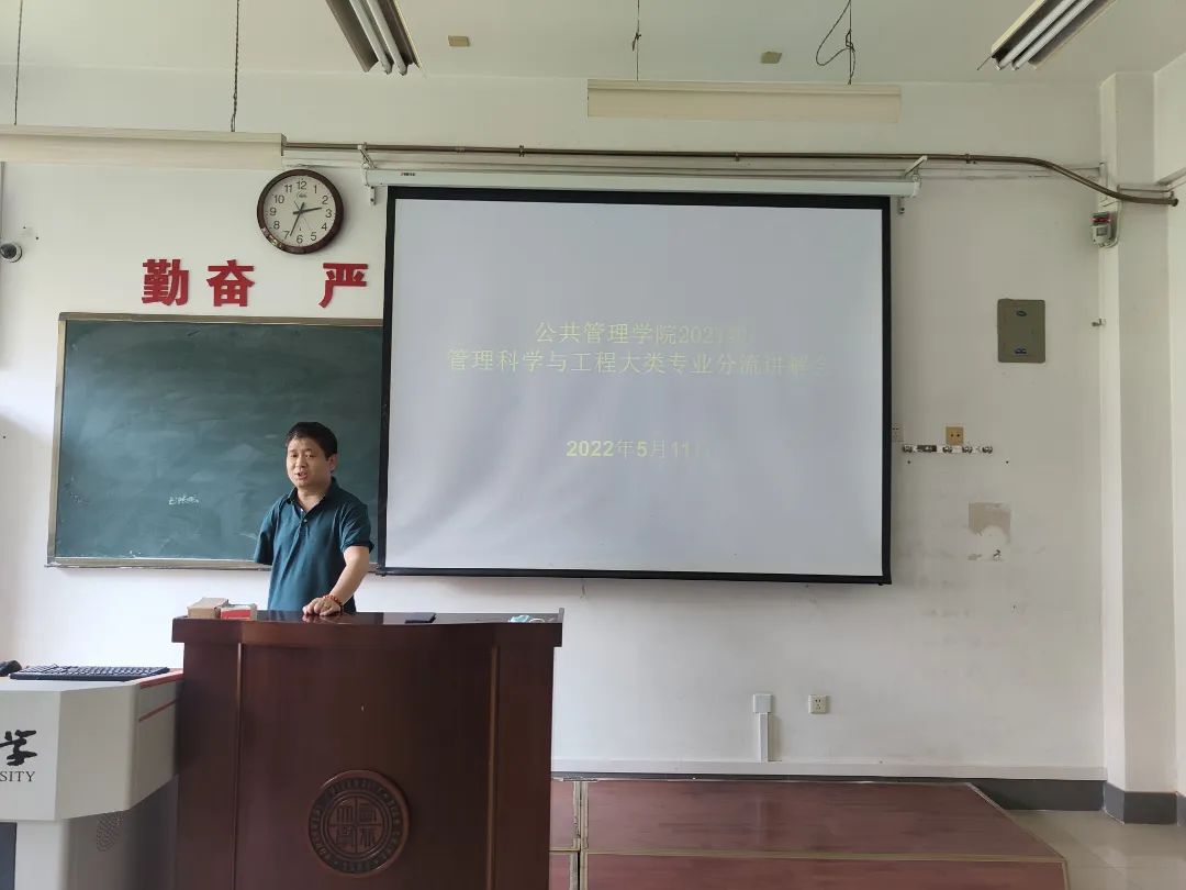 5月11日,管理科学与工程类专业分流宣讲会在1309教室召开,李尧远老师与周文光老师为2021级管理科学与工程类的全体同学讲解了大类各专业的详细情况。