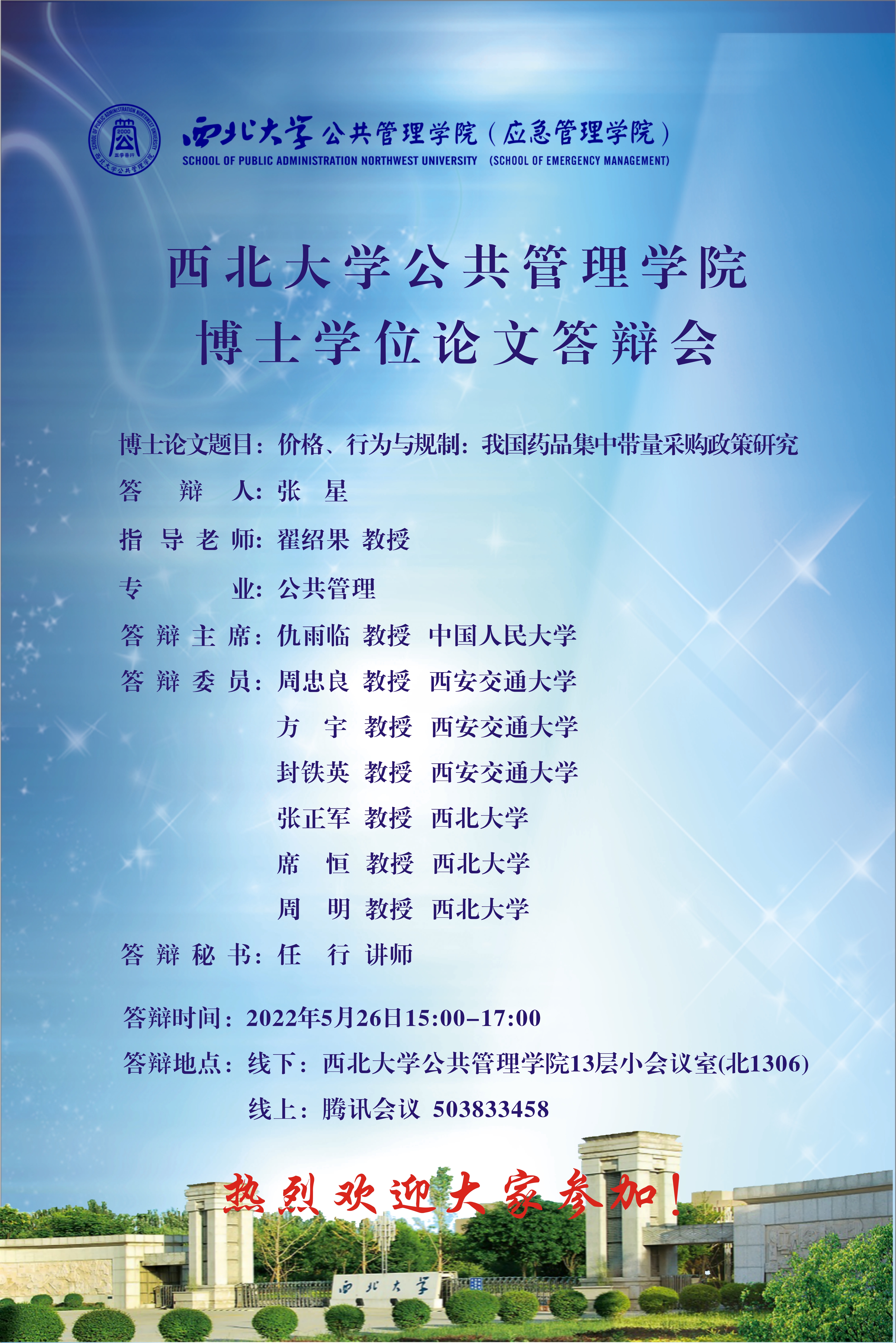 西北大学2022年上半年行政管理专业研究生学位论文答辩信息表