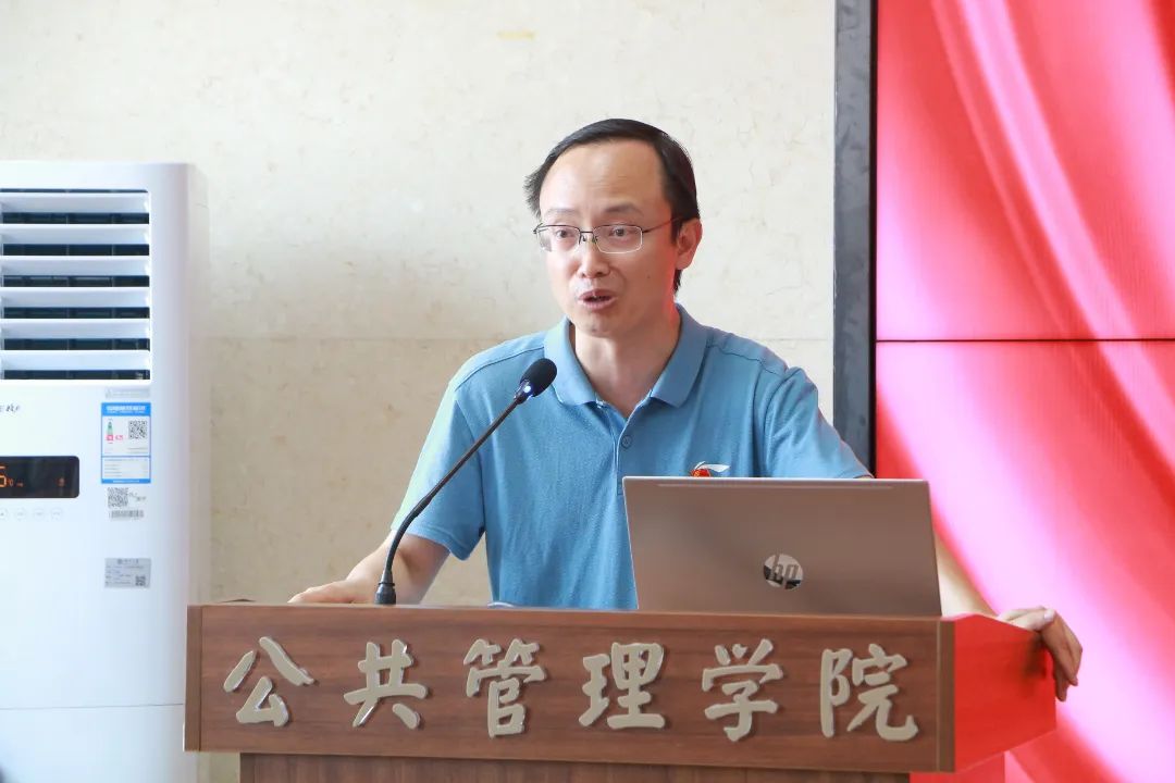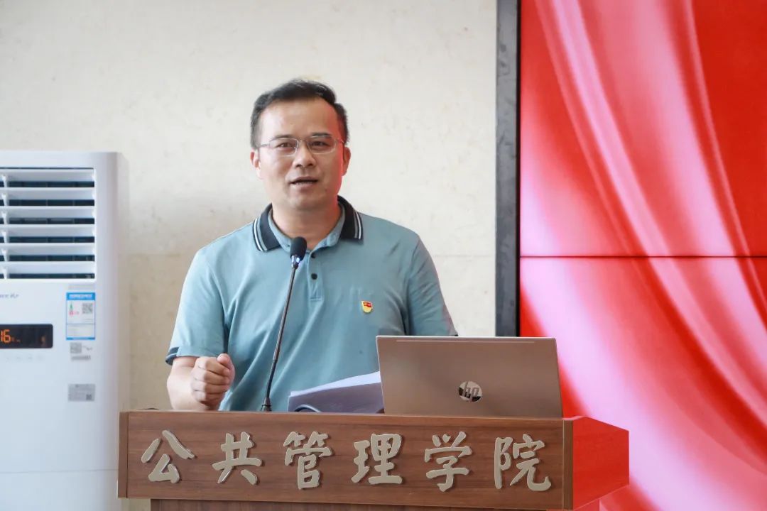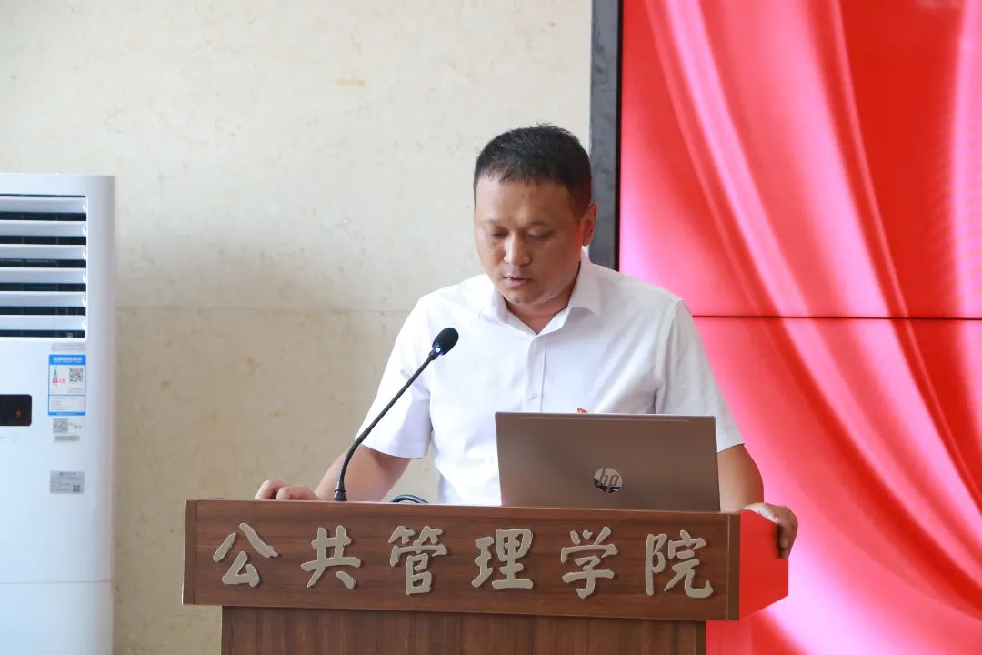 大会第八项,校党委常委、副校长奚家米同志作总结致辞,他代表校党委向受到表彰的先进集体和先进个人表示祝贺,向为学校发展做出贡献的广大教职员工与全体学生表示感谢与慰问。奚校长肯定了学院近年来党建事业发展取得的可喜成绩,鼓励学院党委再接再厉,以高质量党建引领新时代高水平学院发展,团结带领广大公管学子成为有理想、敢担当、能吃苦、肯奋斗的新时代青年,并对学院师生提出三点希望:一是要深学细悟百年党史,传承红色基因。在党史学习中悟透党的创新理论、核心思想及先进做法,加强思想政治建设,成为有力量的红色基因传承者。二是要不断练就过硬本领,在实践中学习。广大党员干部要全面提高个人素质,锤炼“七种能力”,敢于担当,敢于拼搏;青年学生党员要把学习作为首要任务,坚持学以致用,勇于实践。三是要不忘初心勇毅前行,争做时代新人。要把个人理想追求融入党和国家事业之中”,不忘初心,勇担使命,在奋斗中书写人生华章。