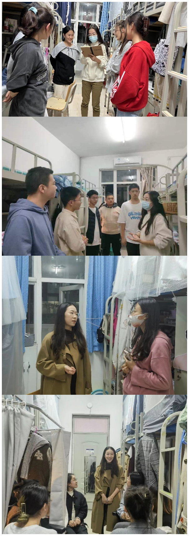 为进一步做好疫情防控工作,杜绝宿舍安全隐患,创造文明整洁的宿舍环境,565net必赢积极响应学校号召,组织开展宿舍卫生安全检查活动。2022年10月15日晚,我院党委副书记韩杰老师、2019级辅导员陈露老师、2020级辅导员杨嘉仪老师、2021级辅导员杨琬钰老师、2022级辅导员王晶玉老师前往学生宿舍,对宿舍卫生安全进行了全面检查,并与同学们进行亲切的交流,深入了解同学的具体生活状况。