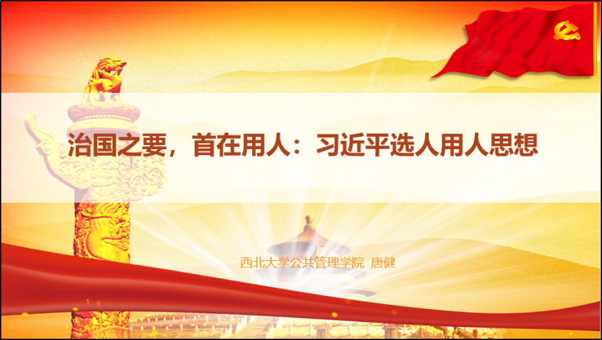 唐健老师作了《治国之要,首在用人:习近平选人用人思想》的主题汇报。他从习近平总书记在党的二十大报告中关于选人用人的相关论述出发,从选人用人的意义、选人用人的原则、选人用人的标准、选人用人的途径、干部队伍的培养管理、年轻干部的培养体系以及集聚爱国奉献的各方面优秀人才等方面对习近平选人用人思想的相关论述进行了梳理,阐述了习近平选人用人思想的主要内容与时代价值。