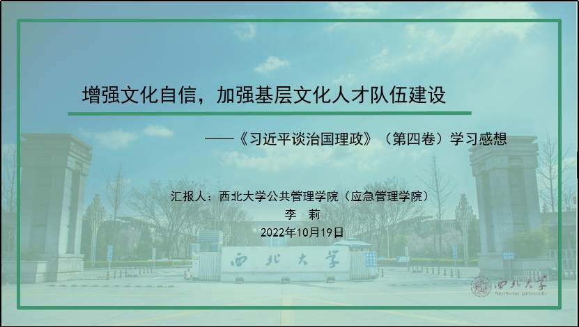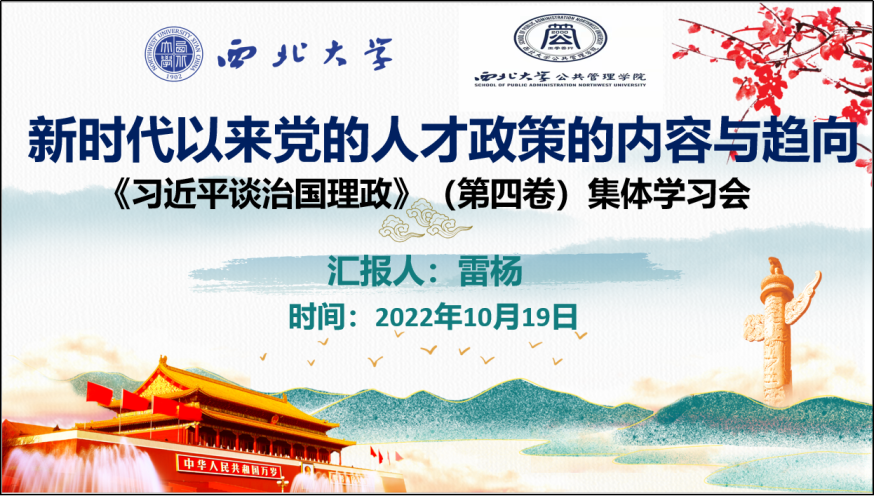 2022年10月19日晚,由西北大学565net必赢党委主办、人力资源管理团队承办的《习近平谈治国理政》第四卷集体学习会在线上成功举行,来自人力资源管理团队的部分师生参与了线上分享与交流,会议由唐健老师主持。