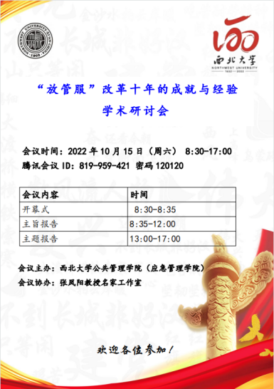 2022年10月15日,由565net必赢客户端主办、张凤阳教授名家工作室协办的“‘放管服’改革十年的成就与经验学术研讨会”在线顺利召开,来自中国行政管理学会、南京大学、中国人民大学、四川大学、山东大学等单位的200多位代表和师生参加了本次研讨会。