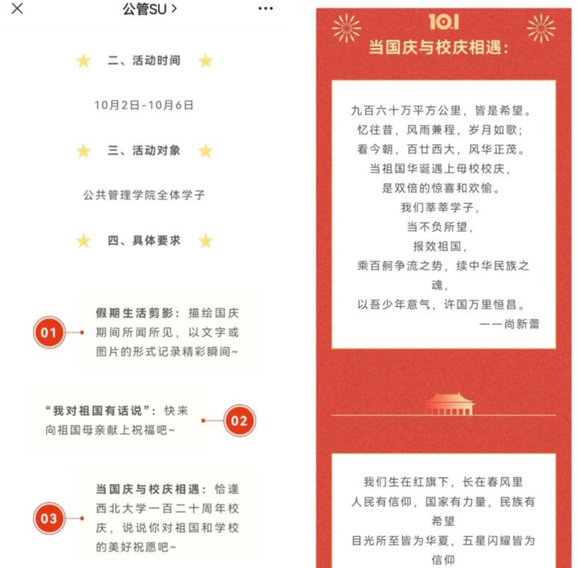 为迎接西北大学双甲子校庆,丰富校园文化,我院学生会于2022年5月24日至28日面向全院学生开展三行情书活动,以“对大学生活的感悟,歌颂西大百廿历史征程”等为主题,表达公管学子对西北大学的祝福。