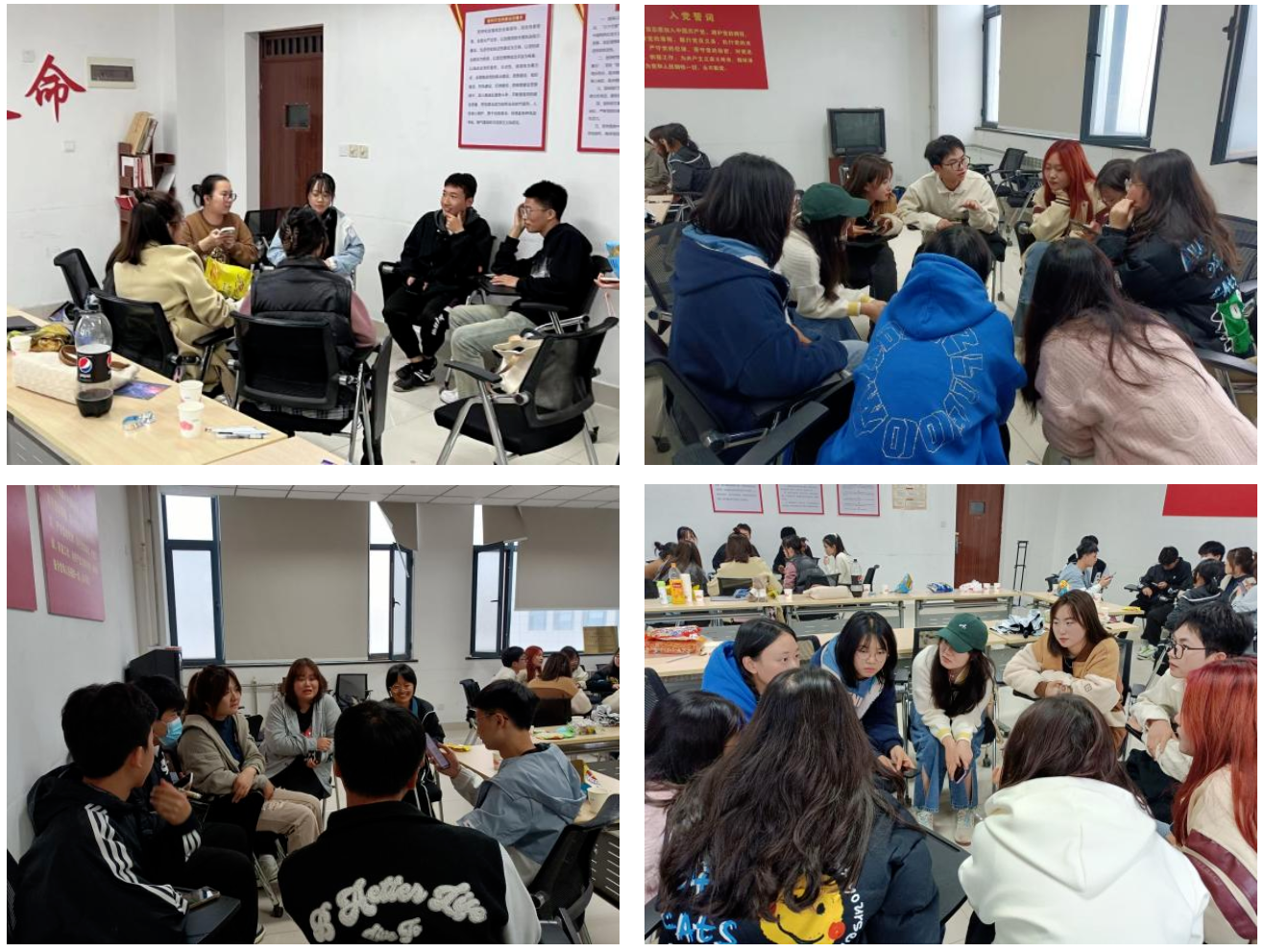 接下来,班长组织全班进行了“击鼓传花”、“听歌识曲”、“海龟汤”等游戏,调动了同学们的积极性。在温馨美好的气氛中,大家释放了自己的压力,收获了欢乐与友谊。