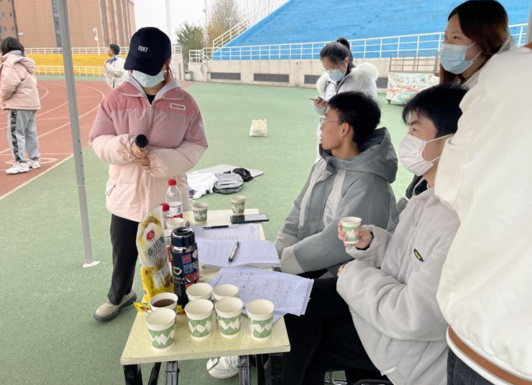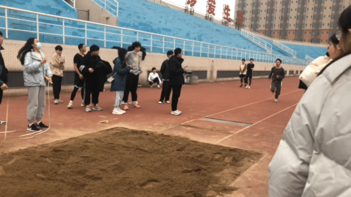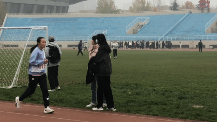 操场上“珍爱生命,热爱运动”八个大字熠熠生辉,操场中的公管学子用青春热血诠释这八个字。