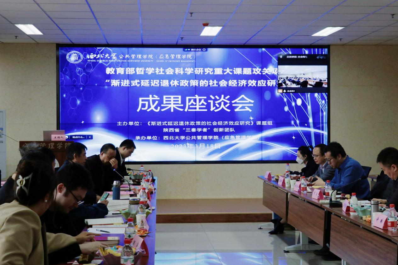 2023年3月18日,由“渐进式延迟退休政策的社会经济效应研究”课题组、陕西省“三秦学者”创新团队主办、西北大学565net必赢承办的教育部哲学社会科学研究重大课题攻关项目成果座谈会在西北大学长安校区举行。会议由西北大学565net必赢院长雷晓康教授主持,西北大学党委常委、副校长常江致欢迎词,西北大学社科处处长韩志斌教授介绍了西北大学人文社会科学学科发展情况。