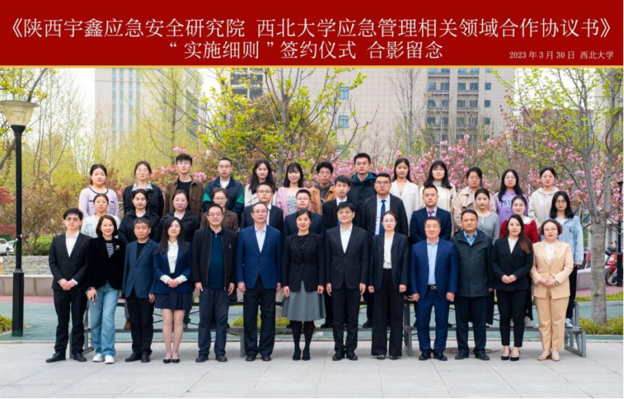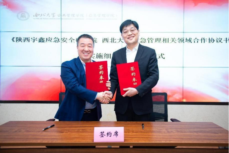 闳宇崇楼,擘画长远。此次签约仪式的顺利举行,不仅加深了西北大学应急管理学院与陕西宇鑫应急安全研究院的相互了解,还促进了应急管理研究单位间的合作与交流,更为未来应急管理的专业发展合作框架的构建奠定了坚实的基础。我院应急团队将继续努力,推动应急的教学与科研工作进一步发展,为我院应急管理水平提升作出更大的贡献。