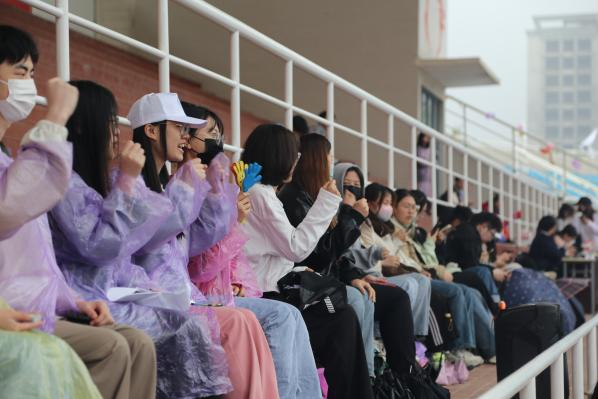 风雨中,同学们激情呐喊