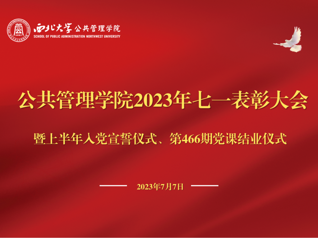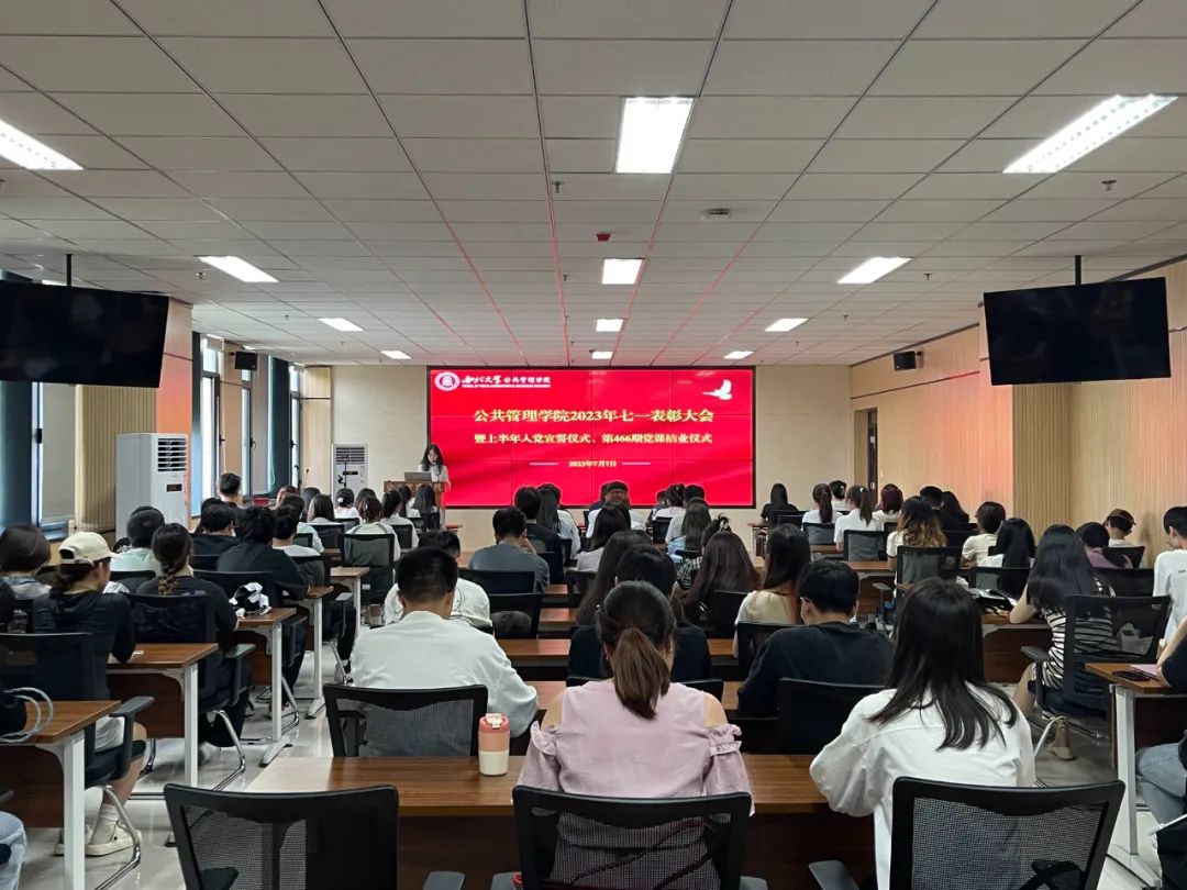 为庆祝中国共产党成立102周年,深入推进主题教育,弘扬党的优良传统,激励全体党员不忘初心、牢记使命,展示和表彰一年来各党支部、广大党员在工作中取得的丰硕成果,发扬典型模范引领作用,7月7日14:00,我院于西学楼北1304多媒体会议室召开2023年七一表彰大会暨上半年入党宣誓仪式、第466期党课结业仪式。