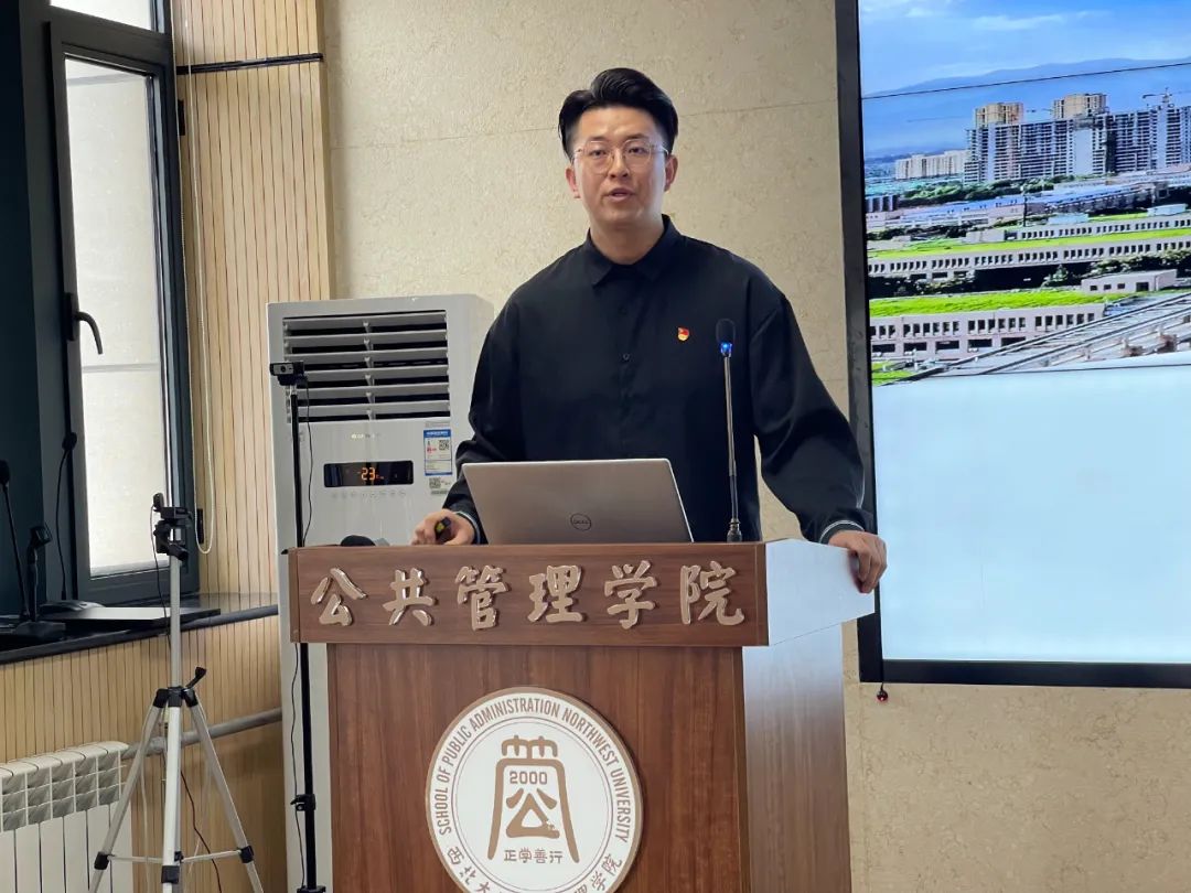 党员代表研究生联合党支部书记刘泓贤同志以“初心如炬,嘉言如丹,双肩如铁:伟大工程视域下党建与科研互促融合之道”为题,基于伟大工程视域,介绍样板支部建设经验以及个人从事党务工作的实践经历的心得体悟,与全体党员共勉同行。