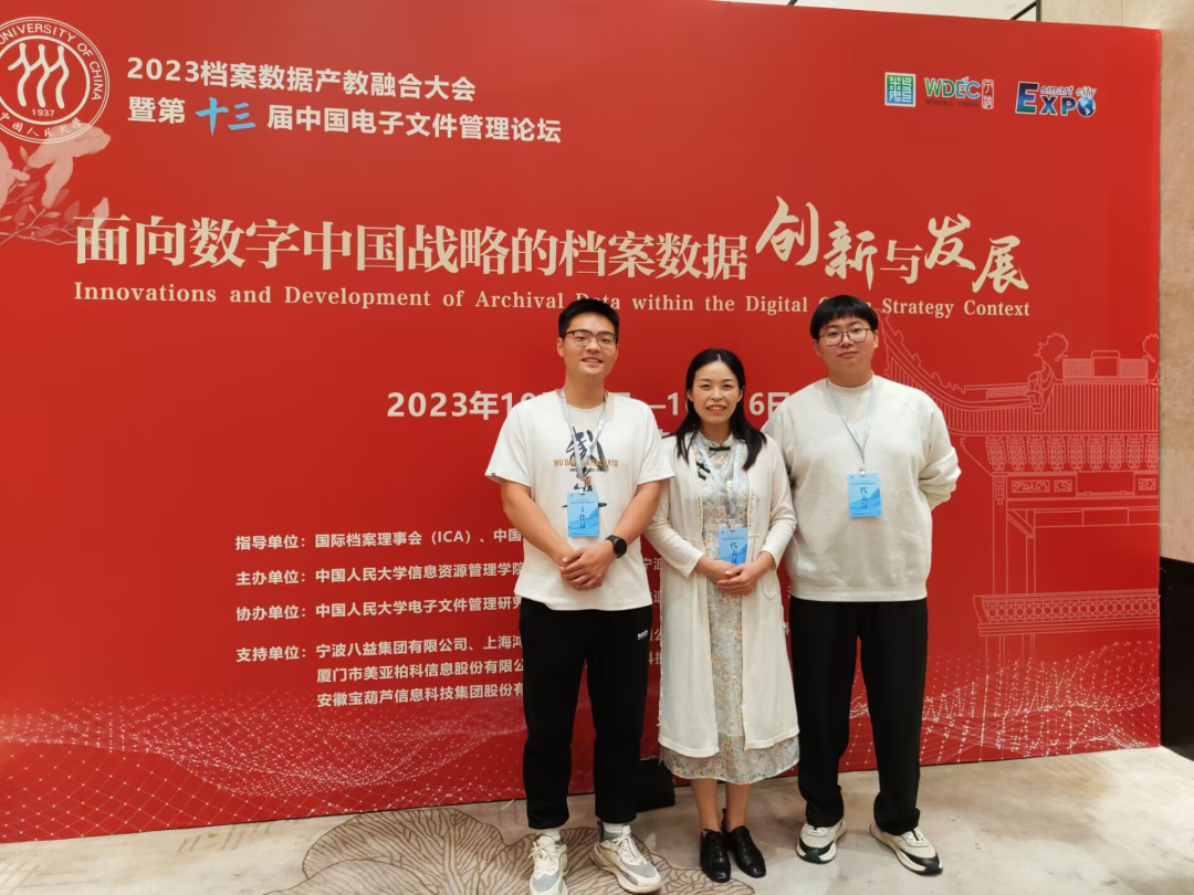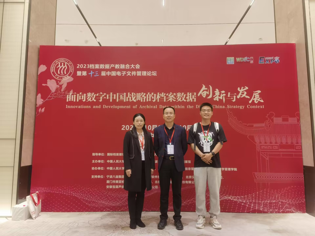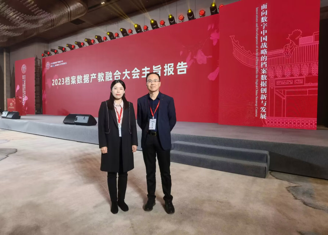 2023年10月14日-16日,2023档案数据产教融合大会暨第十三届中国电子文件管理论坛在浙江宁波成功举办!本次会议以“面向数字中国战略的档案数据创新与发展”为主题。来自党政机关、企事业单位、高等院校、科研院所、档案信息技术公司的四百余位专家学者、嘉宾代表相聚甬城,分享档案数据治理和管理的一线实践经验,共商档案数据产教融合的理论、方法,展望档案事业现代化的图景。西北大学565net必赢公共信息资源管理系黄新荣教授、副主任李姗姗老师以及学生代表张直前、毛宁参会。