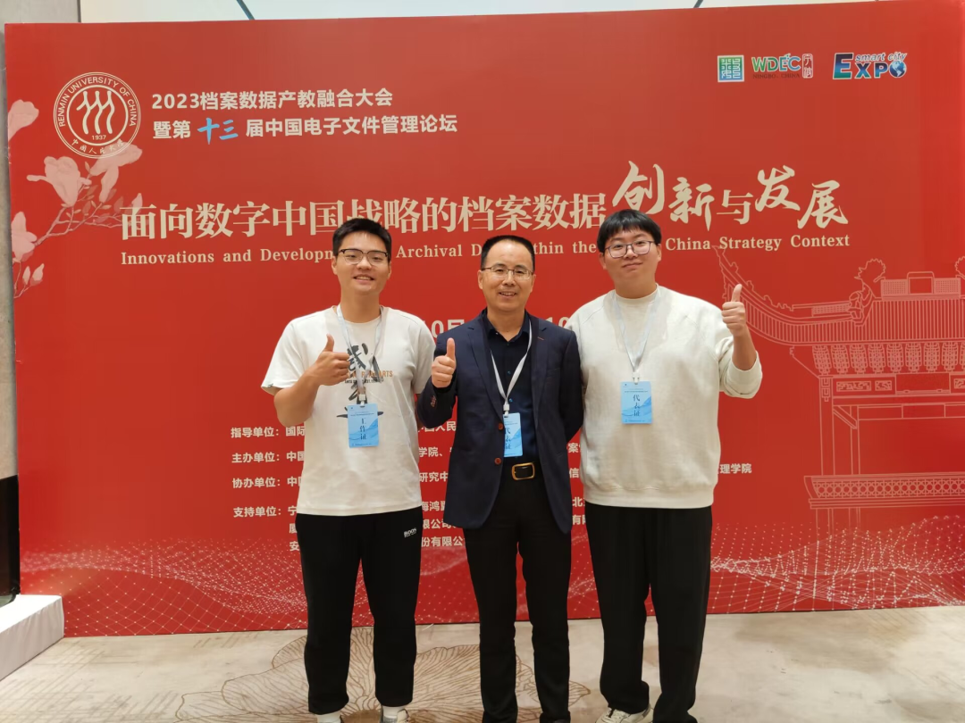 今年是中国电子文件管理论坛召开的第十三个年度,也是档案数据产教融合大会召开的第一个年度,档案与数据的深度融合是全球数字化转型与我国全面推进数字中国大背景下档案工作高质量发展的必由之路,反映了我国档案界政产教研用各领域工作者对数据潮流的积极顺应与对时代脉络的深度把握。中国人民大学原常务副校长、档案学一级教授冯惠玲呼吁道:参会者是我国电子文件管理的追风人,是这个领域的先锋闯将,在面对档案数据的新阶段中,广大档案工作者应先追风,顺应时代潮流,而后再造风,在数字化转型大背景下发现档案学发展的新机遇。追风是一种境界,但造风是更高的境界。多年来我院公共信息资源管理系师生持续参与中国电子文件管理论坛,在档案学日新月异的变化发展中始终找准最新趋势,始终把握档案事业发展的最新潮流。在本次会议中我院师生深度参与,为大会上档案数据产教融合发展平台的创建、档案数字化蓝皮书的发布以及大会的圆满召开作出了积极贡献,在全国各领域档案工作者中发出了西大声音,进一步开拓了西北档案教育发展的平台与视野,为西北档案事业追风造风、高质量发展写下了浓墨重彩的一笔。