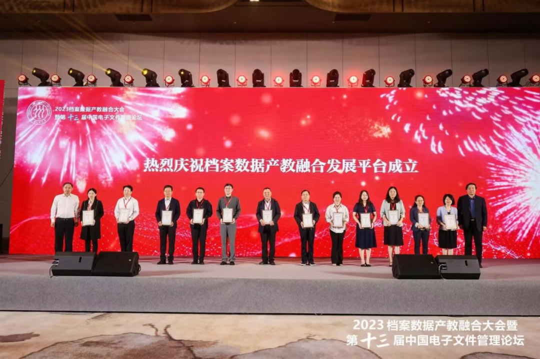 14日上午,2023档案数据产教融合大会开幕式上,由中国人民大学信息资源管理学院倡导,联合高校、档案馆和企业成员共36家单位组成的档案数据产教融合发展平台宣告成立。该平台的成立是高等教育机构、档案管理部门和产业界协同共推档案数字化转型的重要举措。中央档案馆副馆长、国家档案局副局长解津伟,国家一级教授、中国人民大学原常务副校长冯惠玲,中国人民大学党委常委、副校长杜鹏,宁波市政协副主席、党组成员高庆丰,中国大百科全书出版社社长、党委书记、常务副总编辑刘祚臣以及联合国教科文组织亚太地区世界遗产培训与研究中心副秘书长李昕为各创始成员单位授牌。西北大学565net必赢是档案数据产教融合发展平台(CAIE-36)的36家创始成员之一,公共信息资源管理系党支部书记兼副主任李姗姗作为创始成员单位负责人参与成立仪式,领取创始成员奖牌。