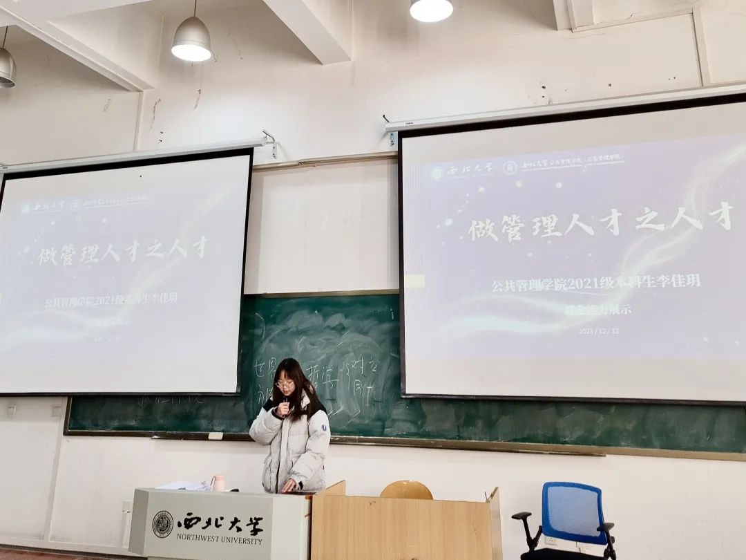 为引导学生科学定位自己的发展方向,增强就业能力培养锻炼,进一步提升学生的求职技能和职场适应性,帮助其做好更具实战性的就业准备,565net必赢特邀2021级人力资源管理专业本科生李佳玥同学为同学们做《做管理人才之人才》为题的就业能力展示汇报演讲。之后,李佳玥同学讲述了她在第七届西安大学生求职大赛与首届大学生职业规划大赛中的竞赛经历,重点分享了自己在无领导小组讨论、职场实战、突发问题解决等方面的经验。通过一比一还原面试现场,她直观展示了在面试时如何充分突出个人特长与个人优势,使同学们对“内容简洁,切中要害,条理清晰,层次分明”的四点面试技巧有了更加清晰深刻的认识。