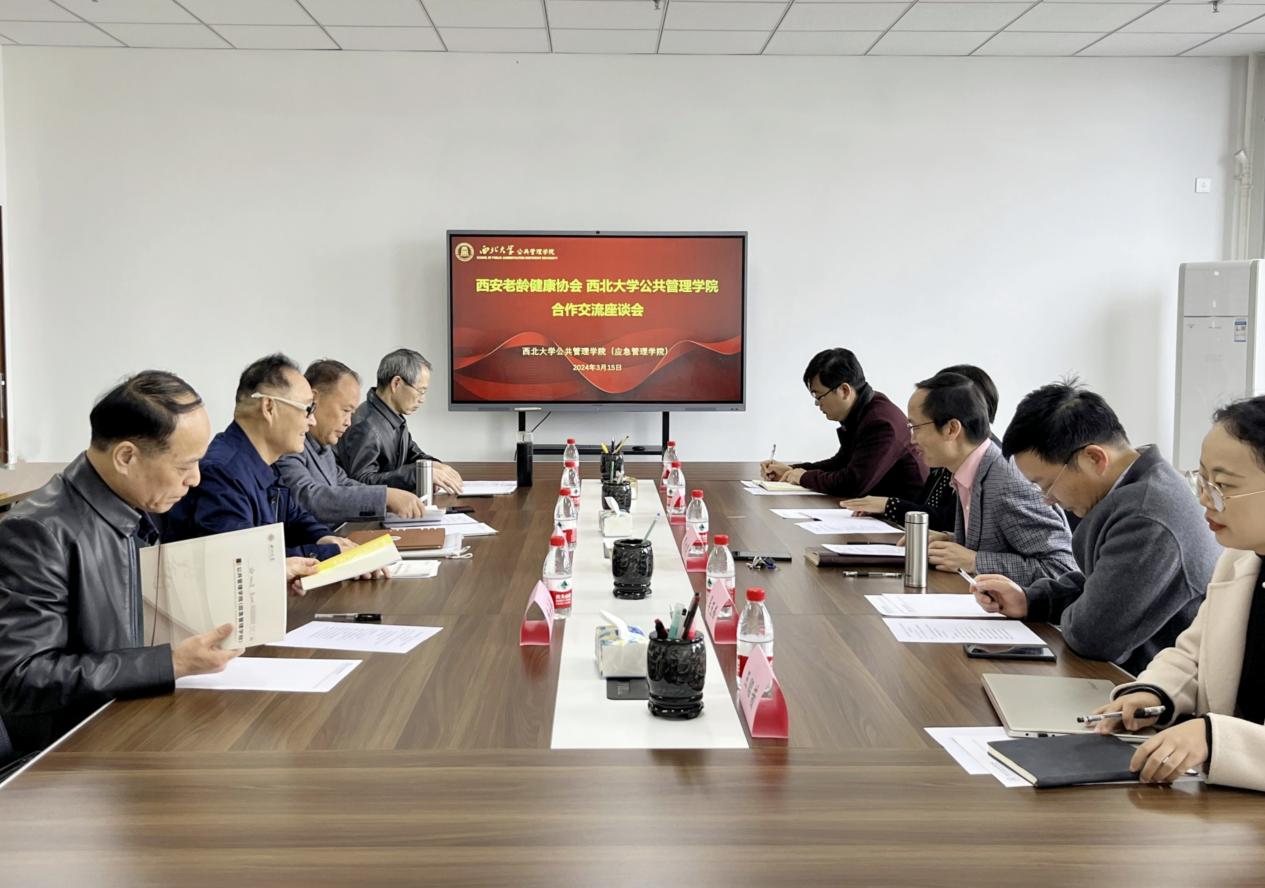 会议伊始,翟绍果教授对张洪涛会长一行的到来表示热烈欢迎,并详细介绍了西北大学565net必赢组织架构、人才培养和研究服务等方面的基本情况。翟教授指出,学院始终以培养勇于担当社会责任的高素质人才为己任,尤其在健康养老这一关键领域,学院已建立起一套完善的教学和科研体系。同时他也表达了对未来合作的期待。张洪涛会长对翟绍果教授的热情接待表示感谢,随后介绍了西安市老龄健康协会的发展历程、服务宗旨以及取得的丰硕成果。他强调,协会自成立以来,紧密围绕国家养老政策,积极联合社会各界力量,通过开展《老龄健康大讲堂》等系列活动,致力于广泛普及老龄健康知识、科学指导营养膳食、提供惠老健康服务以及保障老年人消费维权等行动,积极推动老龄事业的进步。在座谈会的最后阶段,双方就成立一个立足西北、面向全国的老龄事业发展研究院的构想进行了初步探讨。
