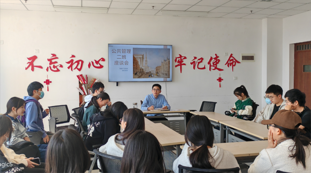 在新学期开始之际,为了帮助学院本科新生更好地适应大学生活,及时回应同学们在学习生活上的困惑,引导2023级公管新生坚定理想信念、脚踏实地,立志做“有理想、敢担当、能吃苦、肯奋斗”的新时代好青年。2024年3月29日,2023级公管2班、公管3班分别召开师生座谈会,会议由辅导员苏林主持,校友夏梦莹和班级同学一同参加。