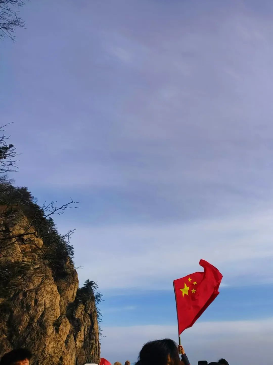 翻山阅己,当凌绝顶;旗帜所向,光芒万丈。是的,红星的光芒会照亮山谷,和我们。)