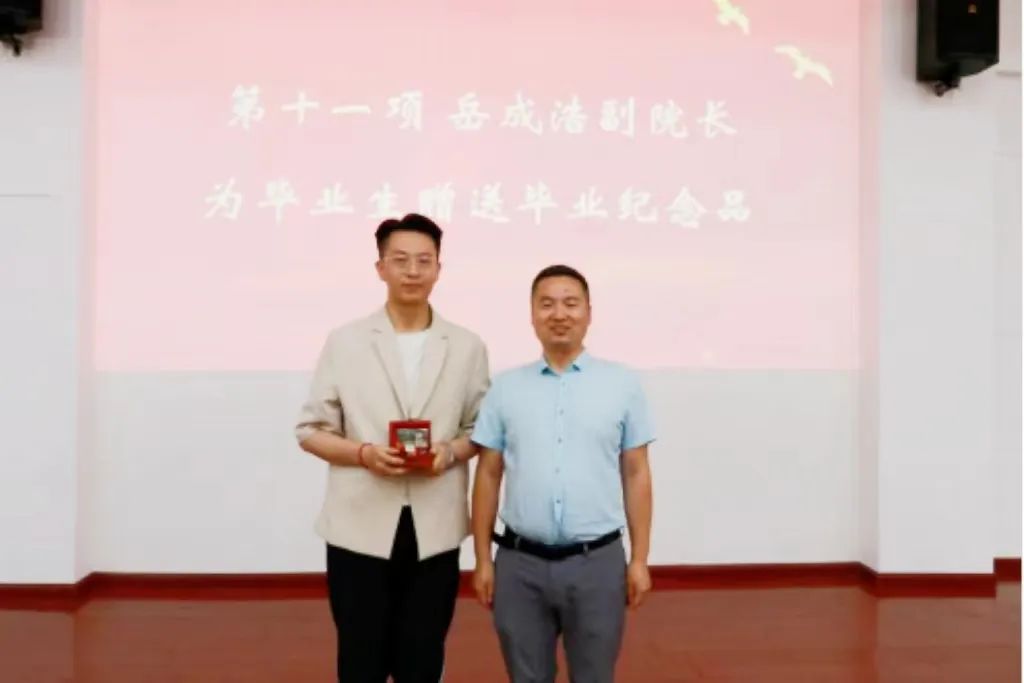 副院长岳成浩为毕业生赠送毕业纪念品——西北大学蓝田玉章。