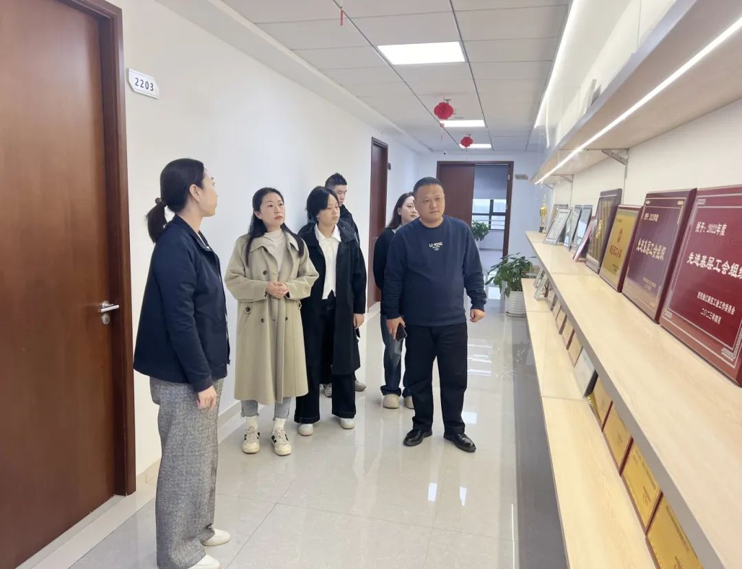 抵达公司后,师生一行在中辉设计集团有限公司工作人员的引领下参观公司展室,直观了解公司的发展历程、经典项目以及企业文化。