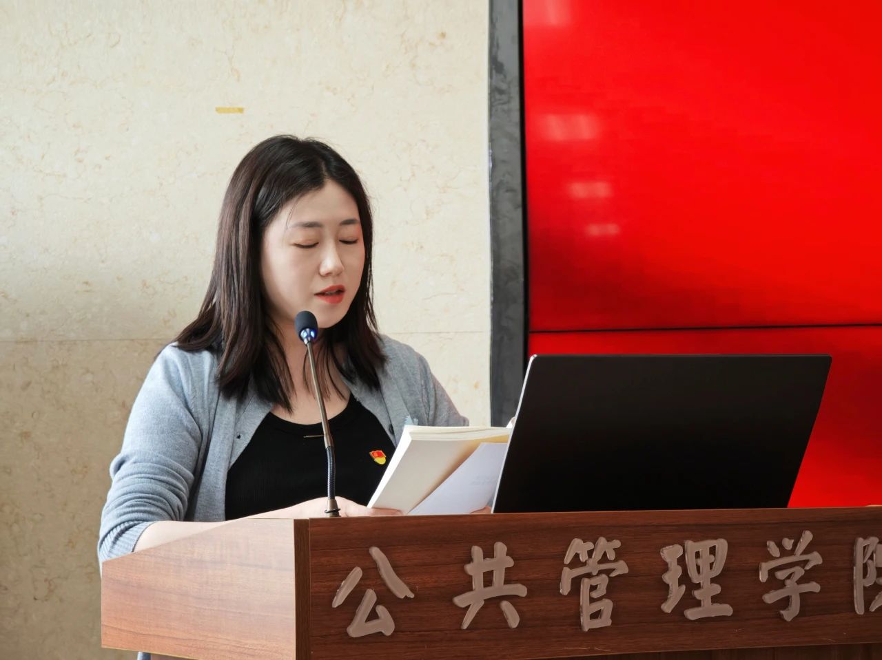 会议第四项,由入党积极分子代表樊思甜同志代表全体入党积极分子郑重承诺:一做学思践行的排头兵,把学习党的创新理论同专业知识深度融合;二做知行合一的实干者,将课堂所学转化为服务社会的行动;三、做清正学风的守护者,坚决抵制学术不端行为。她呼吁全体同志以此次动员会为契机,以中央八项规定精神为标杆,以学为基,以思为要,以践为本。