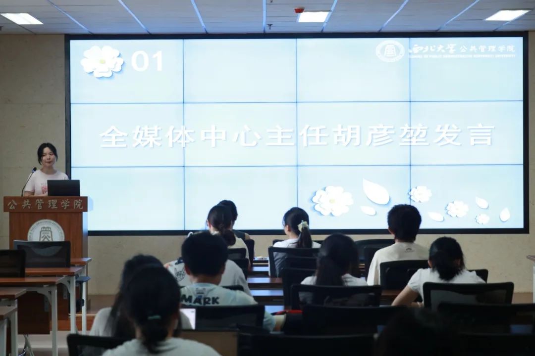 网编组、秘培组、采写组、影像组的负责人依次上台进行发言。他们以详实的数据、丰富的模块生动展现了过去一年的工作成果。同时,也对工作中遇到的问题进行总结与反思,并提出相应的改进措施。最后,他们对未来学年的发展方向进行了展望与规划,表示将以饱满的热情投身于下一学年的工作。