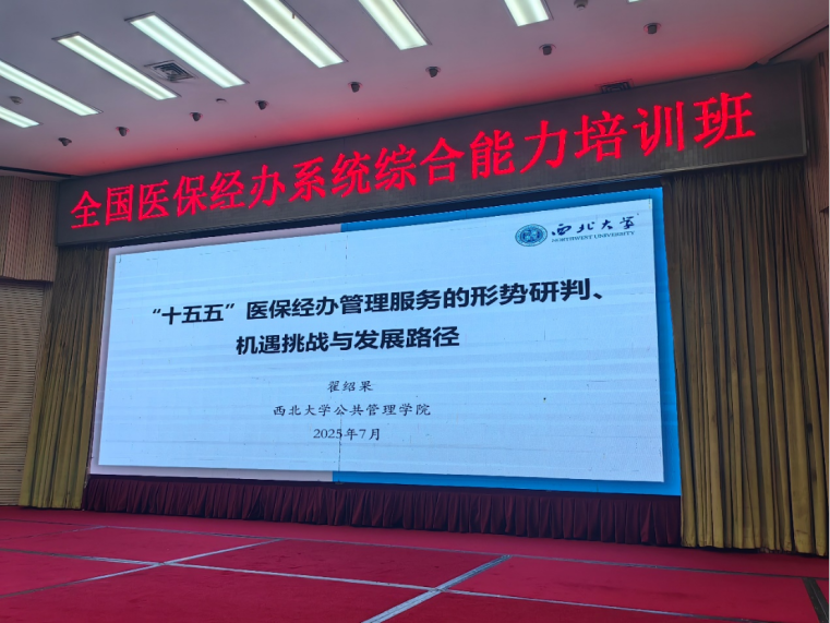 在医保经办管理调研同期,翟绍果教授在全国医保经办系统综合能力培训班(威海)授课,在陕西省医保中心座谈期间为陕西省医保中心、铜川市医保中心和西安市医保中心干部职工授课,讲述十五五医保经办管理的机遇、挑战与思路方向。