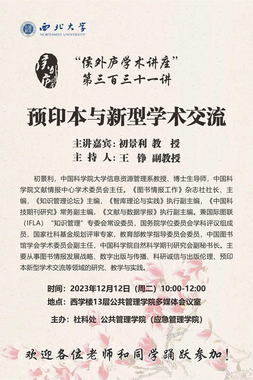 上一条:会议预告|我国应急管理发展的理论逻辑和实践经验 下一条:会议预告 | 第四届“国家治理与社会治理现代化:跨学科对话与反思”学术研讨会