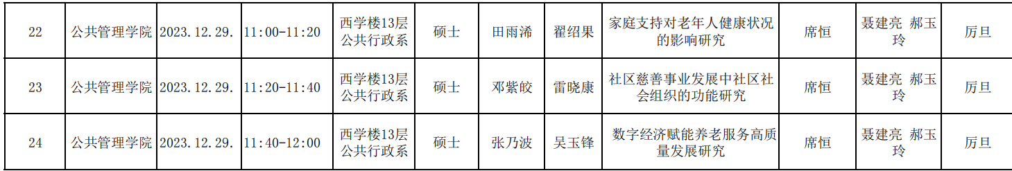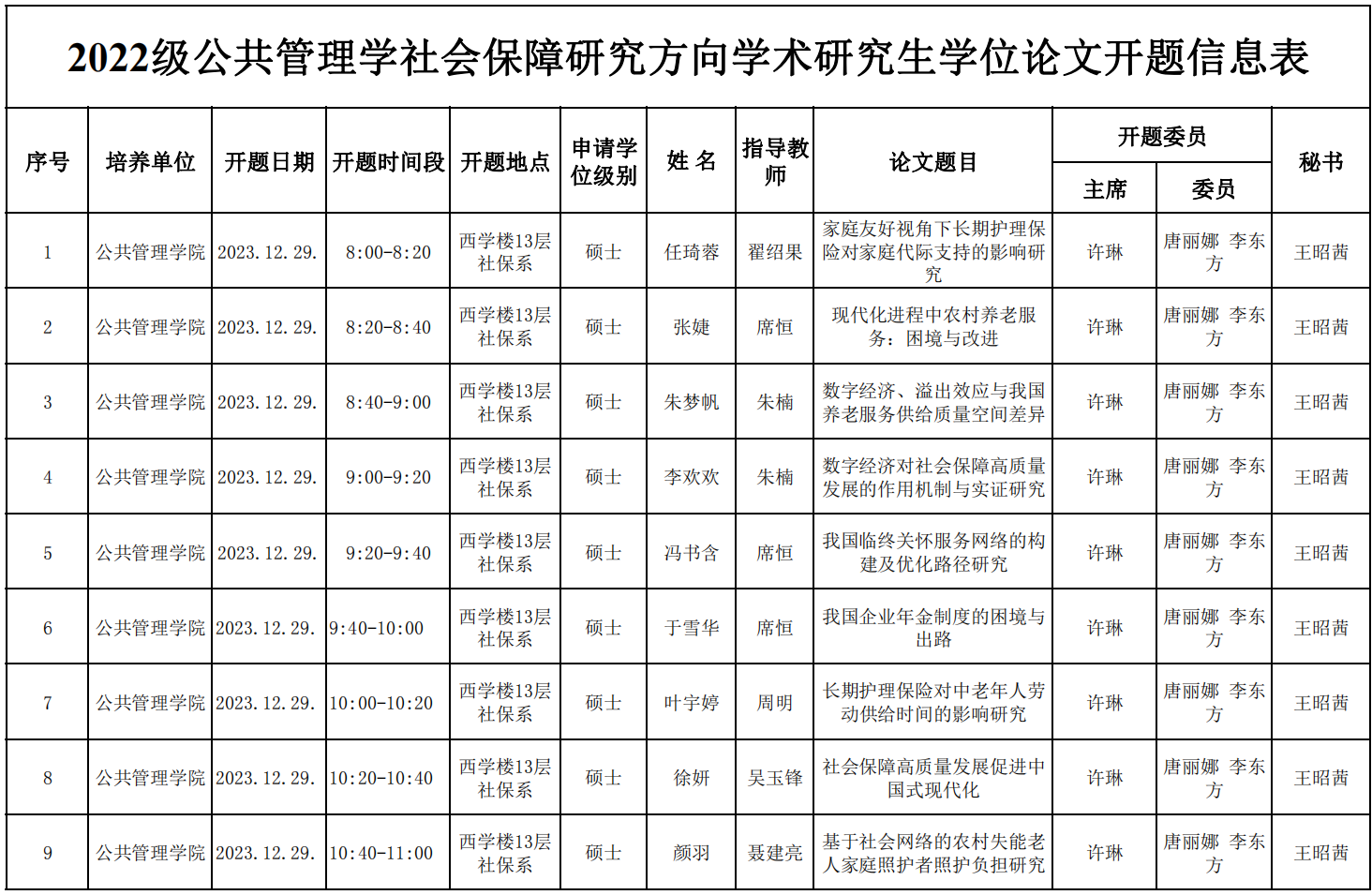 2022级公共管理学社会保障研究方向学术研究生学位论文开题信息表