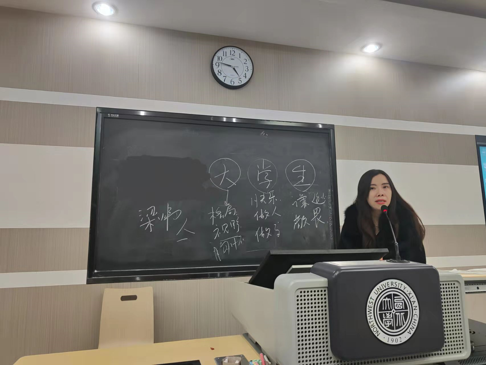 在大家的自我介绍之后,梁炜老师对同学们的发言进行了总结,从由“大”“学”“生”三个字引出的三个方面给同学们指导与建议。“大”是指同学们要有大的格局,大的视野与大的胸怀,要从成年人的立场来思考和解决问题。“学”则指同学们应当学会快乐,热爱生活,同时在不断实践中学会做人,学会做事。而“生”则应始终在保持谦逊的态度,保持对校纪校规的敬畏。同学们认真听讲,收获颇多。