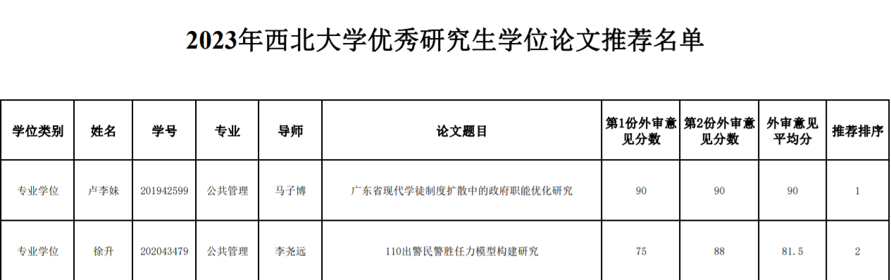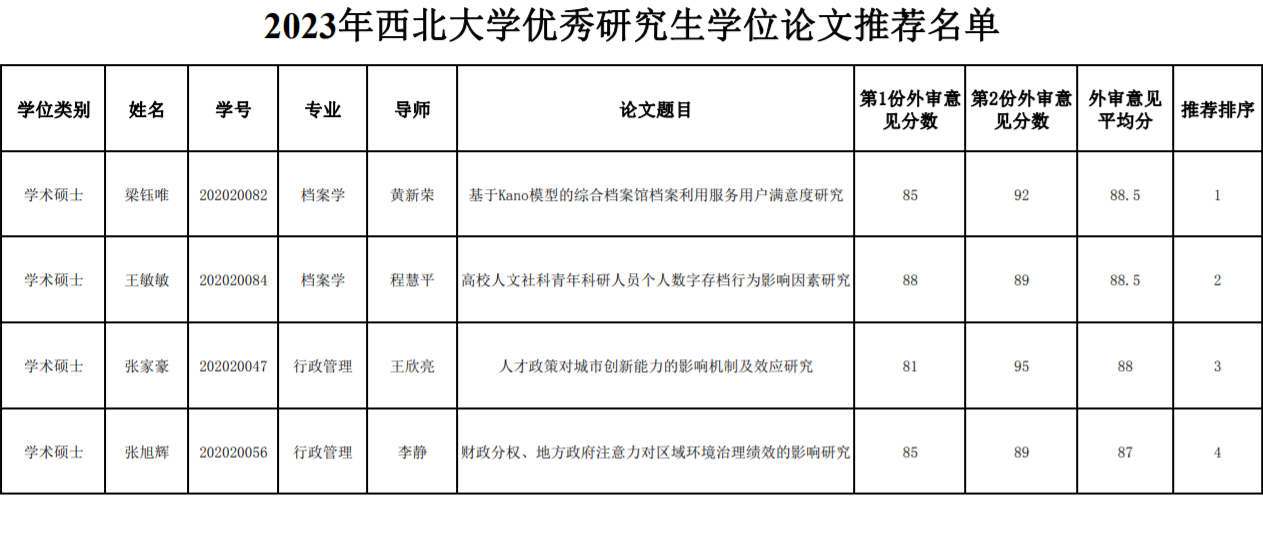 2023年西北大学565net必赢优秀研究生学位论文推荐名单