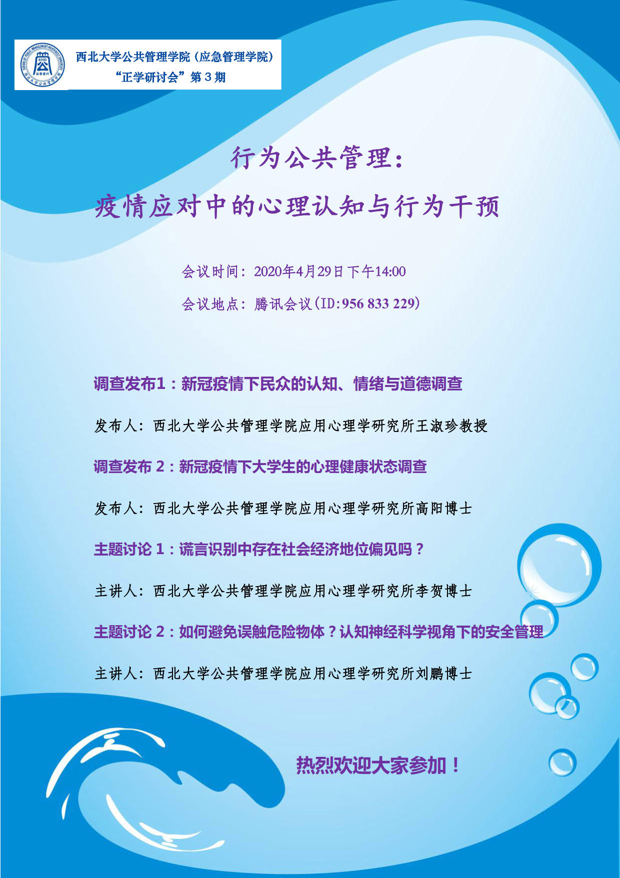 上一条:正学读书会|我院举办“经典阅读与管理思想”线上线下读书会 下一条:西大公管智库政策建议_第4期_关于提升疫情信息治理、防控能力与安全复工的建议