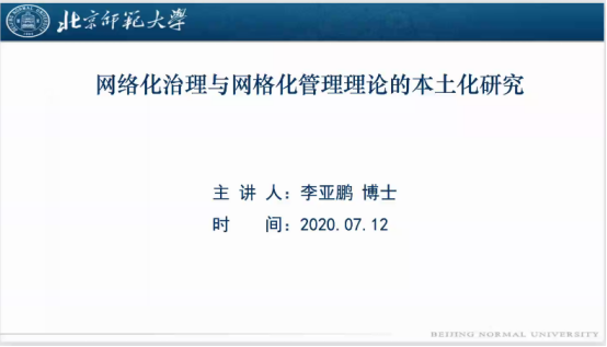 李亚鹏博士分享的主题是“网络化治理与网格化管理理论的本土化研究”,他主要探讨了两个问题:一是网络化治理和网格化管理的理论介绍及其比较,二是理论应用的本土化探讨。首先,李亚鹏博士对网络化治理和网格化管理理论的产生和发展进行了详细的介绍,提出“网络化治理”最早产生于工商管理领域,并介绍了威廉姆森、琼斯以及国内学者彭正银、余志伟等人的观点。进而又从国内外众多学者的研究成果中,对公共管理领域中网络化治理的发展和理论主张进行了详细阐述和论证。“网格化管理理论”中“网格一词最早由计算机领域的网格技术而来,在公共管理领域得到发展,并应用于我国社会基层治理的实践中,如2003年抗击“非典”,2020年的新冠疫情防控中的社区网格化管理等。基于此,李亚鹏博士从理论基础、价值取向、主体结构、适用范围、机制选择和定位这六个方面对网络化治理和网格化管理理论做了对比分析和总结。最后,李亚鹏博士对我国网络化治理和网格化管理理论的本土化应用存在的问题进行了反思和总结并提出了进一步的发展方向。