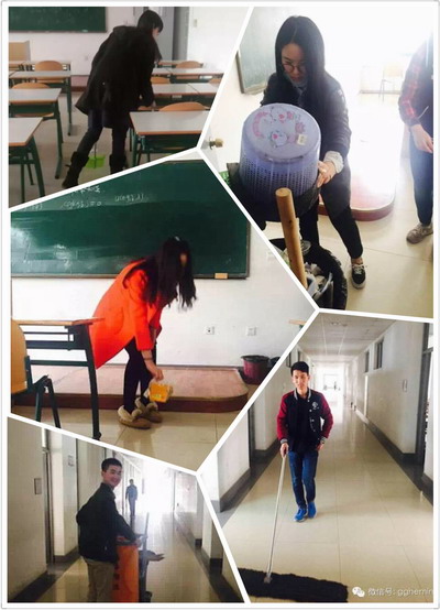 大学校园的卫生环境状况展示着一个学校的精神风貌。活动当天,党员们在我校长安校区二号教学楼内,帮助保洁人员收拾教室内遗留垃圾、擦黑板,清扫教室地面、楼道地面等。在与保洁人员交谈中,党员们得知,这些维护校园环境的最大贡献者,他们普遍年龄都在50岁以上,工作任务单一、工作量大、工作收入较低。一位朴实的保洁大妈对“党员娃娃”们说:只要娃们能好好学习、好好成才,我们苦点累点都值得。而在活动中我们也切身体会到,所谓“课桌文化”、“厕所文化”、小广告、学生们吃完早饭的食品包装等等,给保洁人员带来了额外的工作量,显示出校园中不文明的一面。在体验过保洁人员的辛苦工作之后,学生党员们向保洁人员赠送了手套和护手霜,同时代表广大同学由衷地向他们的辛勤工作表示感谢。
