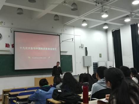 此次专题讲座邀请了哲社的赵沛老师,赵老师以风趣幽默的语言使党课学员对党有了新的认识,调动积极性,端正入党动机,积极分子应该端正入党动机,只有树立正确的入党动机才能带领我们向正确的方向发展,才能有持久不衰的动力全心全意为人民服务。主要讲述三方面内容:一是从党代会的召开时间、主要任务和党的全国代表大会的职权阐释了为什么召开党代会。二是简要回顾历届党代会,旨在让党课学员对中国共产党全国代表大会的历史发展有一个清晰的了解,形成连贯性,从而更好地领会十九大的相关精神。三是对党的十九大的新提法的讲述,为党课学员提供了党的十九大学习的干货和学习方向,以更好促进学员践行党的宗旨,发挥先锋模范作用。积极分子要不断与时俱进,开拓思维和视野,学习新的理论,以提升政治理论水平和思想道德素质。