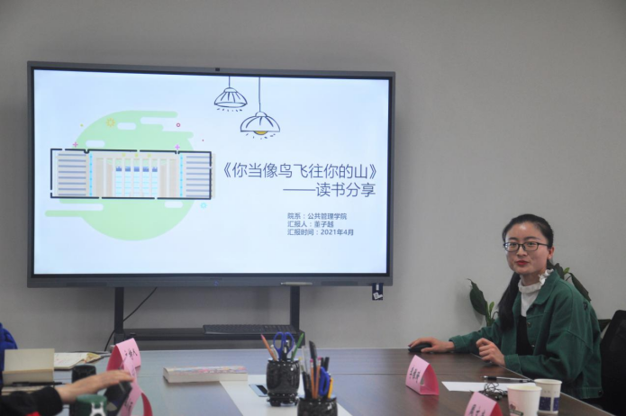 参会学生代表董子越、李雅琦等同学从读书思维与心得体会两方面同大家分享了《你当像鸟飞往你的山》,周文光老师进行了点评与指导。