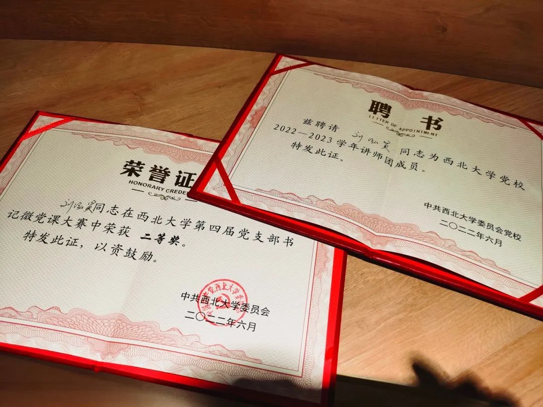 为全面贯彻新时代党的建设总要求和党的教育方针,巩固党史学习教育成果,持续激发党支部工作活力,全面提升党支部书记工作能力和业务水平,以优异成绩迎接党的二十大胜利召开,6月10日,校党委组织部举办了“喜迎二十大,奋进新征程”第四届党支部书记微党课大赛决赛,我院研究生联合党支部书记刘泓贤同志荣获二等奖,并受聘为西北大学党校2022-2023学年讲师团成员。