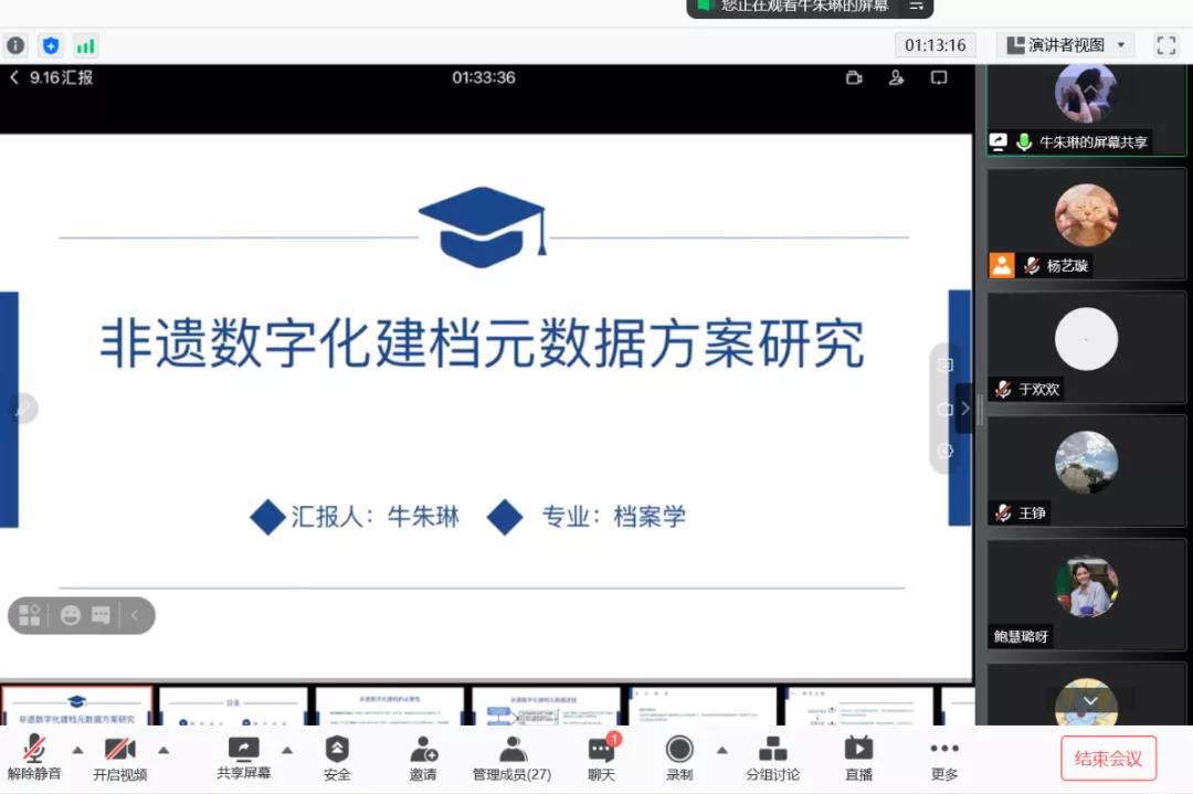 2021年9月16日星期四下午18:30,利用腾讯会议我院公共信息资源管理系举办了正学报告会研究生专场(第一期),这是我院第一次举办正学报告会研究生专场,因此,作为主办团队所在系——公共信息资源管理系非常重视此次活动,全系为此召开了筹办会议,由公共信息资源管理系主任王铮副教授担任这一期的评议老师,图书馆学和档案学专业的学生谢寒冰、杨艺璇、牛朱琳、许琰、朱琳、朱思雨主讲。