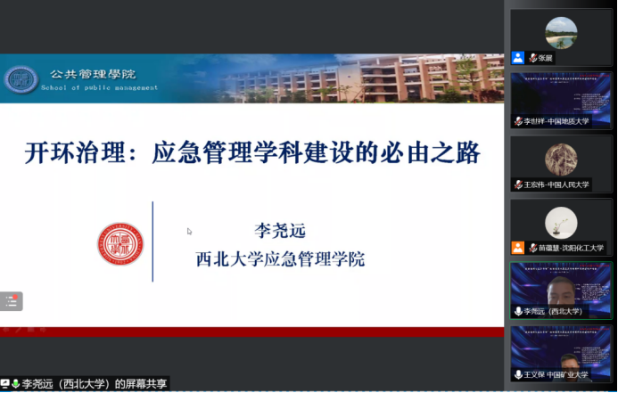 7月9日,“安全治理及应急管理”论坛暨第二届应急管理本科专业建设研讨会的“主论坛及特色论坛”于线上举行。