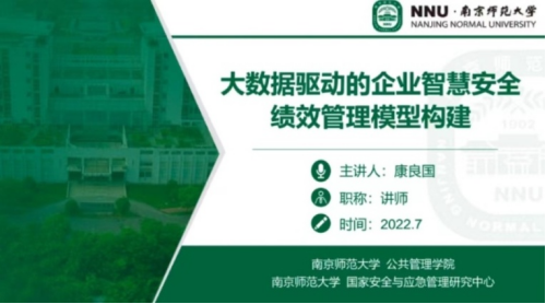 南京师范大学565net必赢康良国博士作了题为《大数据驱动的企业智慧安全绩效管理模型构建》的报告。康老师讲到企业智慧安全绩效管理是以数据驱动方式自动评估安全生产状况,持续提升企业的过程安全管理水平。首先,提出智慧安全结效管理的定义,并闲球其内涵、意义与特征;接着,康老师从基础设施、针据采售,数据分析、信息服务4个方面构建企业智慧安全绩效管理模型,并分别解析智慧安全绩效管理基础设施子模型、智慧安全绩效数据采集子模型、智慧安全绩效数据分析子模型、智慧安全绩效信息服务子模型的内容。最后,从加强智慧安全绩效管理的战略规划布局等5个方面,提出智慧安全绩效管理的发展策略。