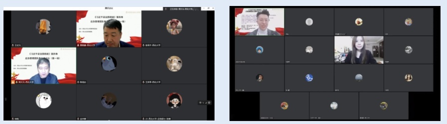 首先,雷晓康教授作了题为《从新冠肺炎疫情防控看我国应急管理体系的完善》的报告。雷晓康教授结合目前新冠肺炎疫情防控的实际情况和真实案例“中国版恐怖邮轮事件”为切入点,引发在线师生对我国新冠肺炎疫情防控的思考。还通过视频《疫情下的旧金山》,对国内外疫情防控的治理情况进行比较。雷晓康教授指出,疫情暴露出了短板和不足,应抓紧补短板、堵漏洞、强弱项,并完善重大疫情防控体制机制,健全国家公共卫生应急管理体系。同时提出三条建议:构建应急物资社会化保障自我提升机制、建立应急物 资社会化保障市场合作机制和完善应急物资社会化保障社会补充机制。基于此,雷晓康教授引出“国家治理体系与治理能力”中应急管理部分的重点内容,结合疫情暴发后我国召开中共第十九届中央委员会第四次全体会议及审议通过并发布的重要文件,强调了我国国家制度和国家治理体系 13个“显著优势”“坚持和完善”,并从“底线思维”出发,呼吁应充分发挥我国应急管理体系特色和优势, 积极推进我国应急管理体系和能力现代化。