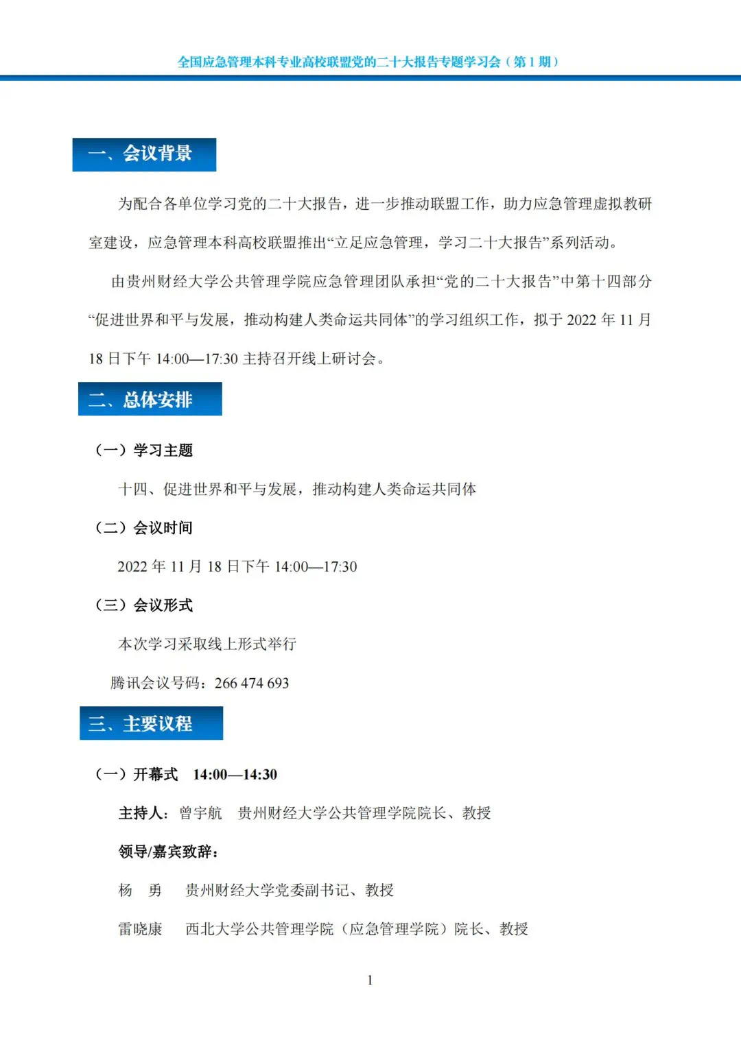 会议预告 || 应急管理本科专业高校联盟党的二十大报告专题学习会(第1期)