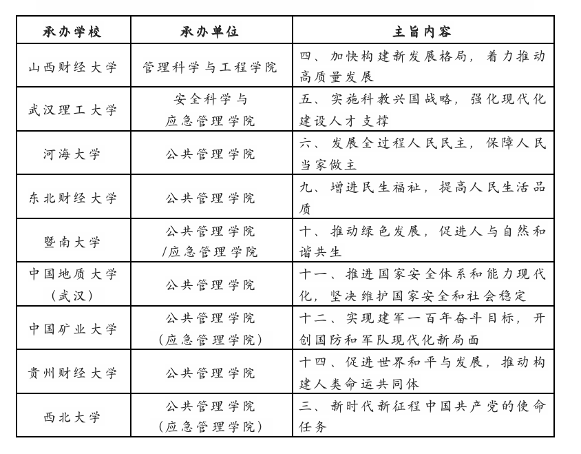 为配合各单位学习党的二十大报告,进一步推动联盟工作,助力应急管理虚拟教研室建设,应急管理本科专业高校联盟推出“立足应急管理,学习二十大报告”系列活动。本次活动将邀请联盟内各个高校和应急管理领域的专家学者展开讨论,力求深入领会党中央对新时代应急管理工作作出的决策部署,在新时代新征程上展现应急管理新气象新作为。