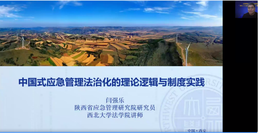 西北大学法学院闫强乐老师作了题为《中国式应急管理法治化的理论逻辑与制度实践》的报告。闫老师针对二十大报告中的第七部分“坚持全面依法治国,推进法治中国建设”就如何总结我国应急管理的经验以推动新时代下应急管理事业的优先发展?如何以法治思维和法治方式促进实现应急管理体系能力现代化?如何从立法、执法、司法和守法各环节构建中国特色应急管理法治体系?提出了自己的思考。