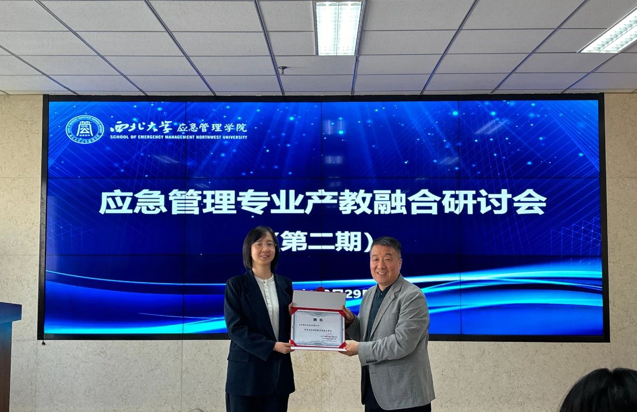 最后,西北大学应急管理学院与易智瑞信息技术有限公司举行了签约共建智慧应急创新联合体仪式。西北大学应急管理学院院长雷晓康教授代表“应急管理本科专业高校联盟”和“西北大学应急管理学院”向易智瑞信息技术有限公司颁发了“智慧应急创新联合体成员单位”的聘书。