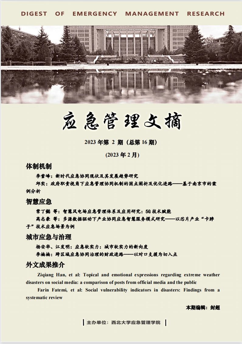 上一条:《应急管理文摘》第十七期 下一条:《应急管理文摘》第十三期